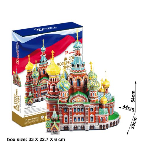 A fun and challenging 3D puzzle of The Church of the Savior on Spilled Blood in Saint Petersburg Constructed using CubicFun's unique slotting system. Difficulty Level: 4 stars ; Number of Pieces: 116 Construction time: 240 to 300 minutes Height when completed: 54cm